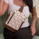 The mocha bloom travel bag that is made from smooth mocha-toned vegan leather with geometric floral detailing can be converted from a crossbody bag to a sling bag.